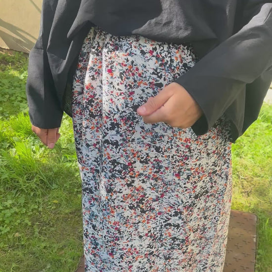 La jupe en satin de soie à motifs, fluide avec un beau retombé, elle est chic, confortable et se porte parfaitement avec tous les styles.