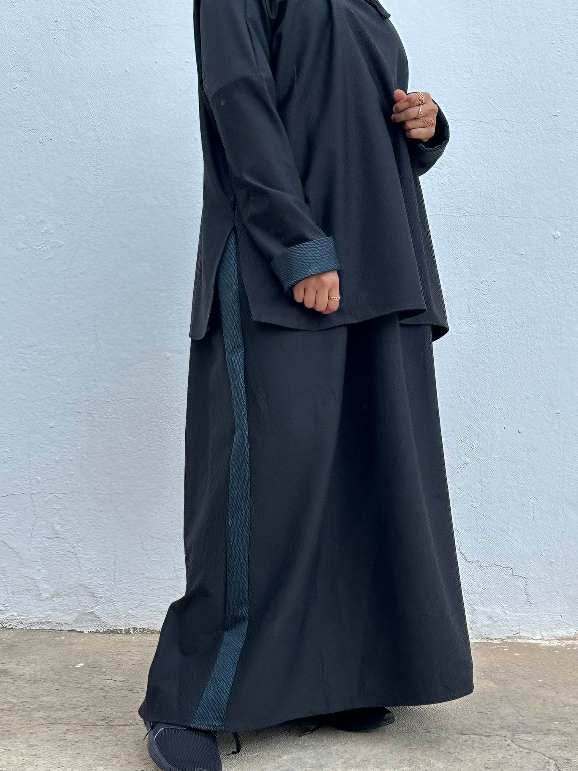 L'ensemble DELA est le choix parfait pour allier confort et style, que ce soit pour une journée détente ou une activité sportive. Composé d'une tunique et d'une jupe, il offre une grande liberté de mouvement grâce aux fentes sur les côtés de la tunique. Des bandes de tissu ajoutées sur les côtés de la jupe et aux extrémités des manches apportent une touche d'élégance et de dynamisme à l'ensemble.